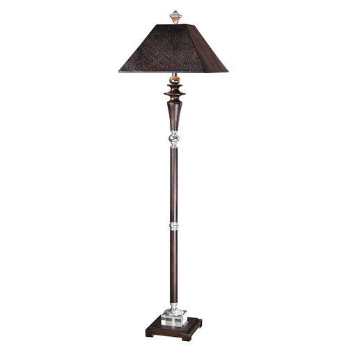 Floor Lamp with Crystal Accent Details from the Campbell CollectionThis lamp is finished in a distressed, burnished wood tone with crystal accents and and chrome plated metal details. The square shade is heavily crackled burnished brown with black tipping.Features:Distressed Wood Tone / Crystal / Chrome Plated FinishCracked Burnished Brown Shade with Black TippingDesigner: Carolyn KinderLighting:Total Wattage: 150 WattsDimensions:Height: 64 Inches
