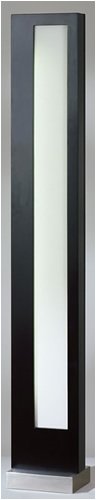 This stunning floor lamp rises like a great tower as light filters out gently through the natural cream colored fabric screen. From Nova Lighting, this is both a light source and a source of wonder. Dark brown wood makes a handsome frame to the rectangular screen. A brushed nickel base completes the modern look. Cream fabric screen. Dark brown wood. Brushed nickel finish. Includes one 28 watt T5 energy efficient bulb (not included). 60" high. 9" wide.
