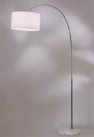 This floor lamp features an arched column with a white linen shade. Also features a frosted-glass diffuser. Takes one 150 watt bulb (not included). 84" high with a 72" span. Shade is 16" across the top, 16" across the bottom and 9" high.