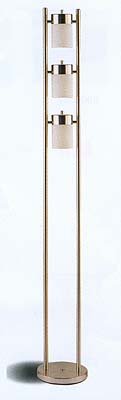 Triple lamp chrome floor lamp. Metal swivel lamps with frosted glass shades. Takes regular 60 watt bulbs. Each light can be turned on seperatly. Also comes as a table lamp.