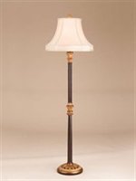 NORTHSTAR FLOOR LAMP, Hand carved wood lamp is accentuated by hand the painted finish in black with gold accents. The ivory shade is made from silk and is hand sewn with a pleated gallery. Mfg code(s): 8654